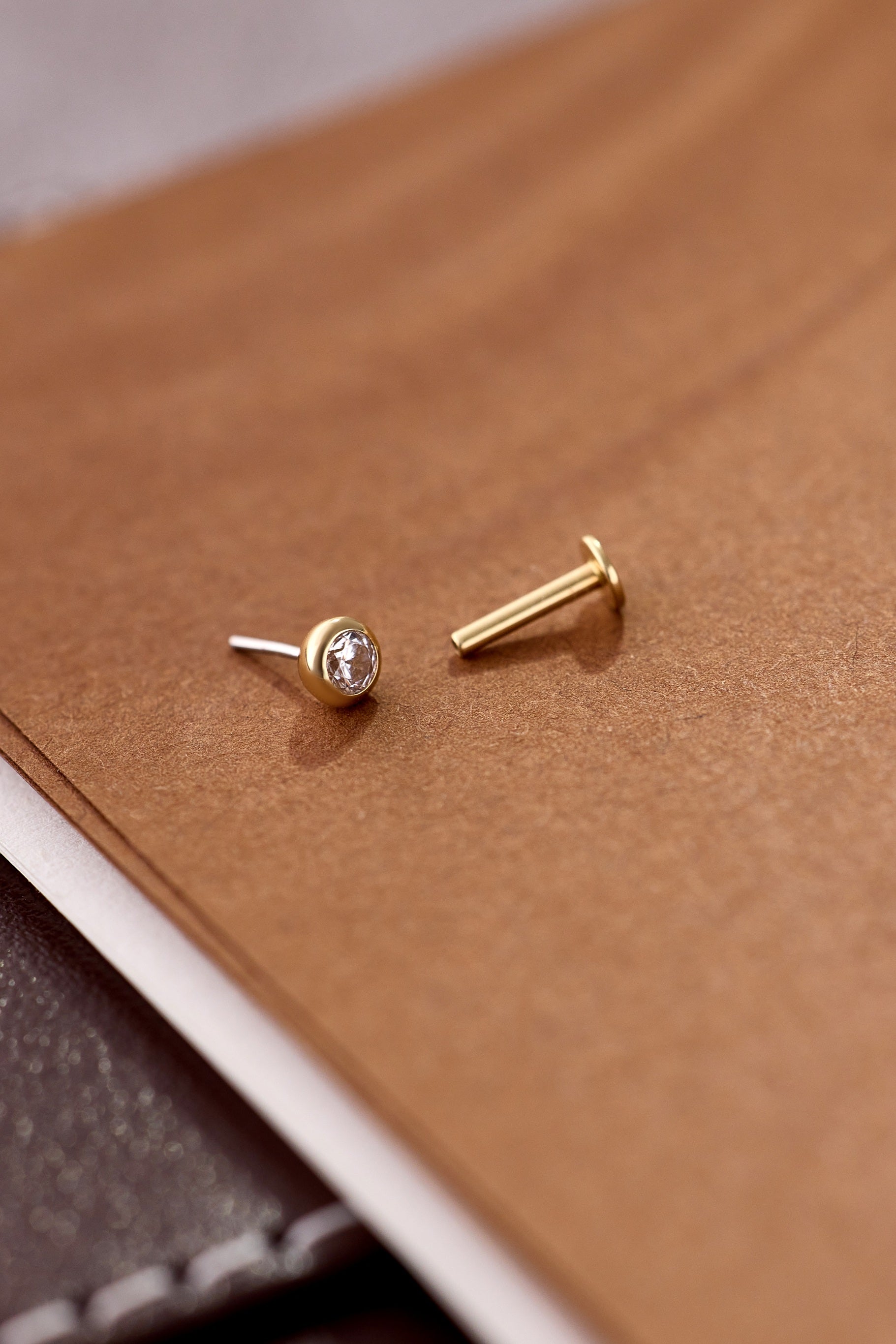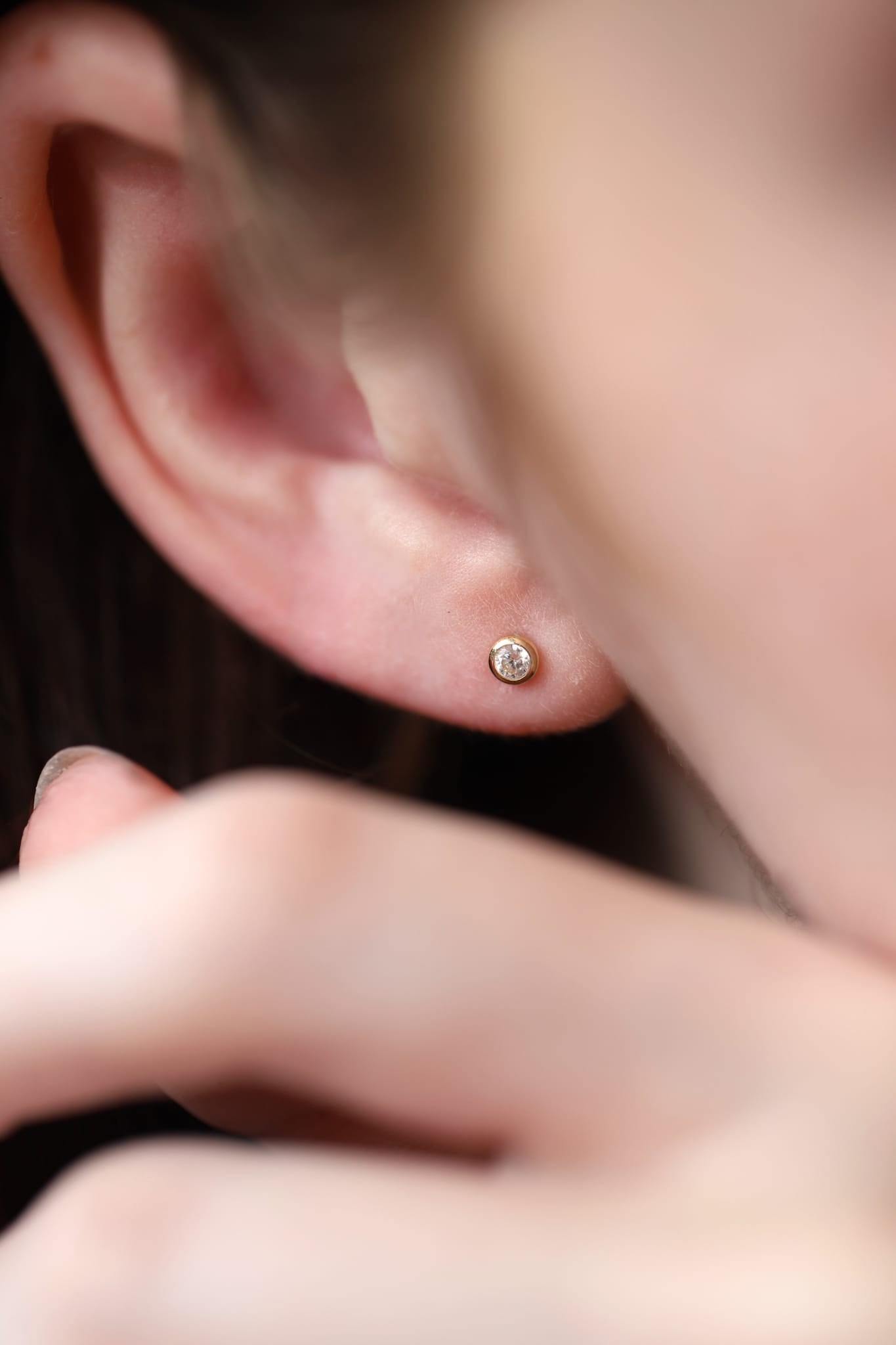 14K Gold Solitaire Aura Threadless Piercing